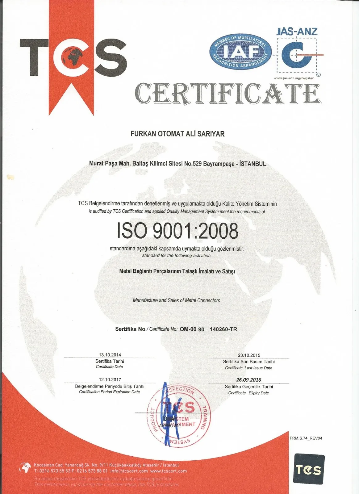 Furkan Otomat olarak, kalite ve güvenilirliği her zaman ön planda tutuyoruz. Üretim süreçlerimizde yüksek standartları benimseyerek, müşterilerimize en iyi hizmeti sunmak için titizlikle çalışıyoruz. Sahip olduğumuz belgeler, sektördeki yetkinliğimizi ve kalite anlayışımızı kanıtlar niteliktedir.
